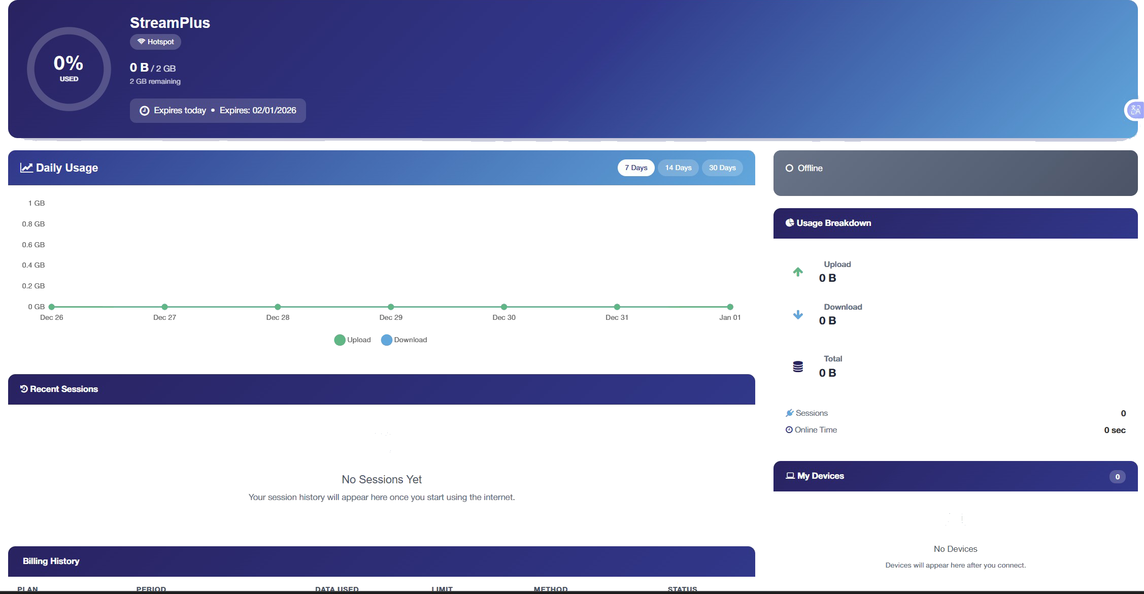 Monitor your internet usage in real time, track connected devices, and understand how your data is consumed, all from one dashboard.